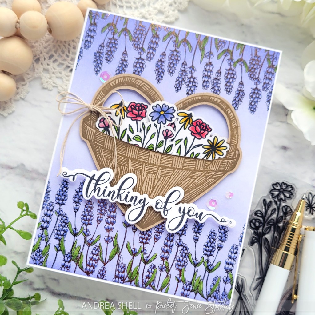 Hi there! Today I’m sharing a card featuring some products from Picket Fence Studios’ newest release. I just adore all of the floral products!