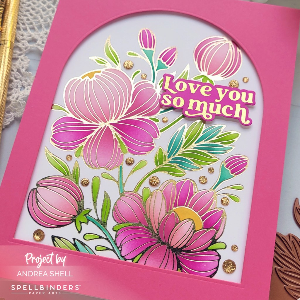 Hi, friends! Today I’m sharing a pair of cards featuring Spellbinders’ Glimmering Peonies Glimmer Plate and showing two ways to color the image.