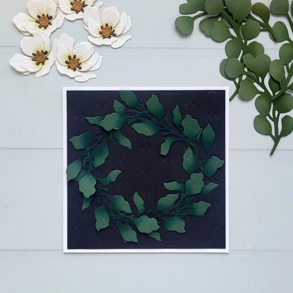 Hello there! Today I’m sharing an elegant Christmas card featuring Crafty Meraki’s Artisan Flora Wreath Dies.